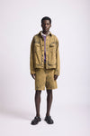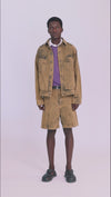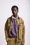 - Jaqueta tingida em sarja com abotoamento e bolsos frontais.